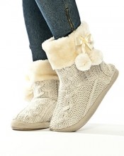 Ladies Slippers Women’s slipper Boots Faux fur lined with pom pomsMEDIUM (UK5-6.5)