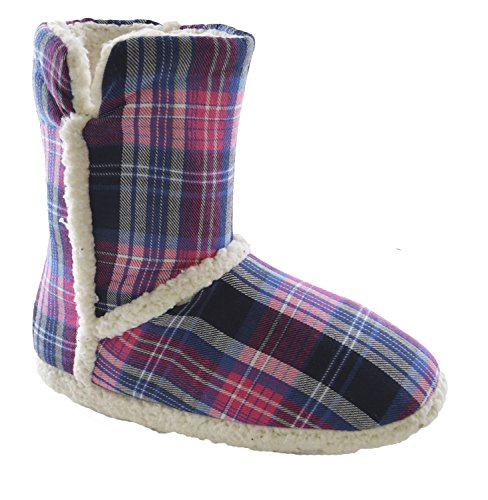 Ladies SlumberzzZ Plaid Tartan Boot Style Slippers