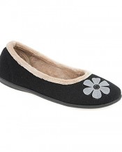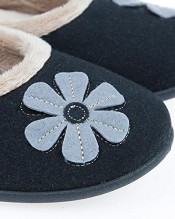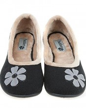 Padders Pump Slipper with Contrast Trim & Flower 145 961 – Black Size 6 UK