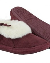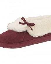 S12-Kalinda- Womens fur cuff Warm slippers with bow. 6 -Burgundy