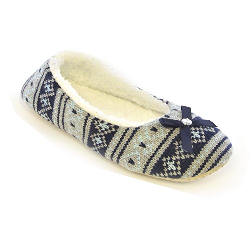 Womens/Ladies Footwear Tribal Knitted Clossed Back Flat Shoe Slippers With Bow Detailing, Navy UK: 5/6|EUR: 38/39
