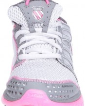 The K-Swiss Lady Blade Light Run Running Shoe features K-EVA which maximizes cushioning and enhances durability of the midsole provided by special formula EVA. A thin layer of Superfoam can be found underneath the K-EVA which gives a soft and resilient feel under the foot. The foot is centred from heel to toe due to the Guideglide midsole construction ensuring a comfortable and stable ride. The stay tied laces help ensure your concentration is on your goal, taking away the worry of shoe malfunction.